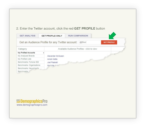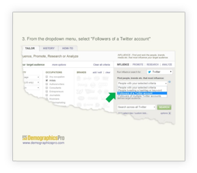 This will search for Twiter accounts followed by your target audience, and rank these according to profile fit.