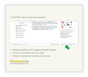Get an insightful audience profile backed by 30+ pages of detailed analysis for the followers of any Twitter account of interest.